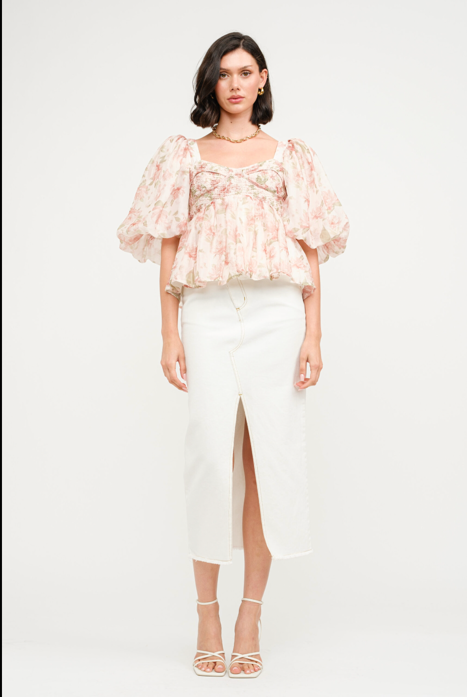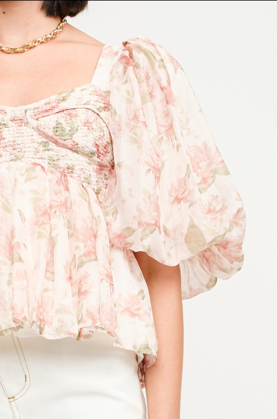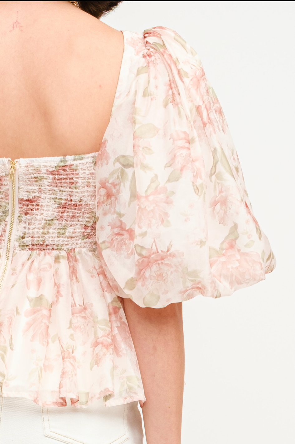 Elevate your wardrobe with our charming Fiore Top. This peach-colored smocked top features an elegant floral print and distinctive bronze zipper detailing. The versatile design pairs beautifully with your favorite denim, skirt, or shorts, making it the perfect statement piece for any occasion. Its flattering silhouette and thoughtful details ensure you'll stand out with effortless style.