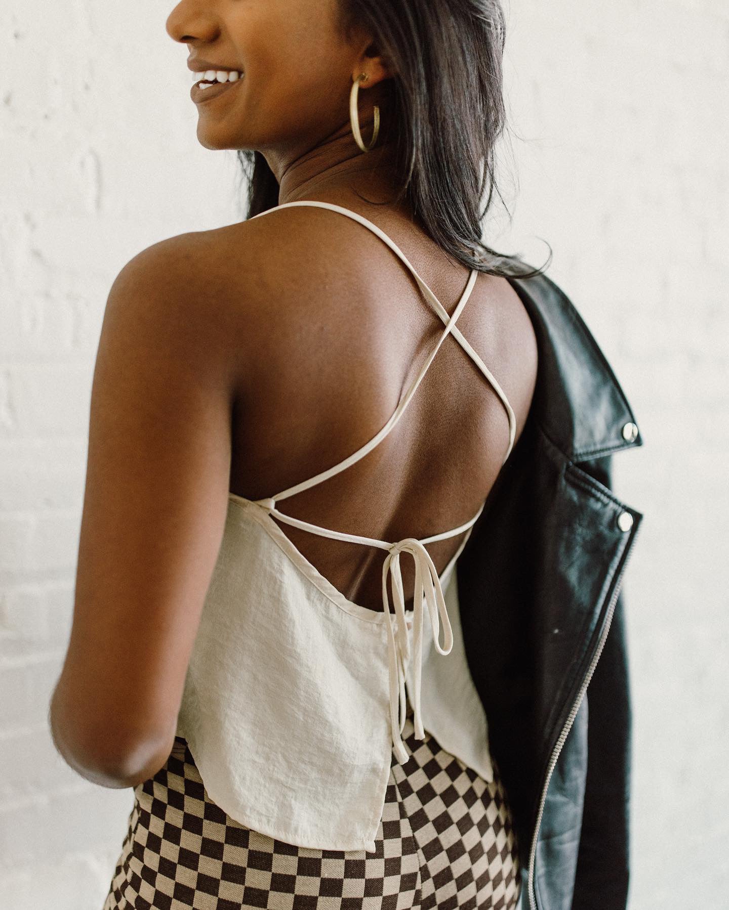 The Carolina Cami is a sophisticated and exclusive basic piece with an elevated twist. Its open back tie detail adds a touch of elegance and sass, making it stand out from other seemingly basic tops.