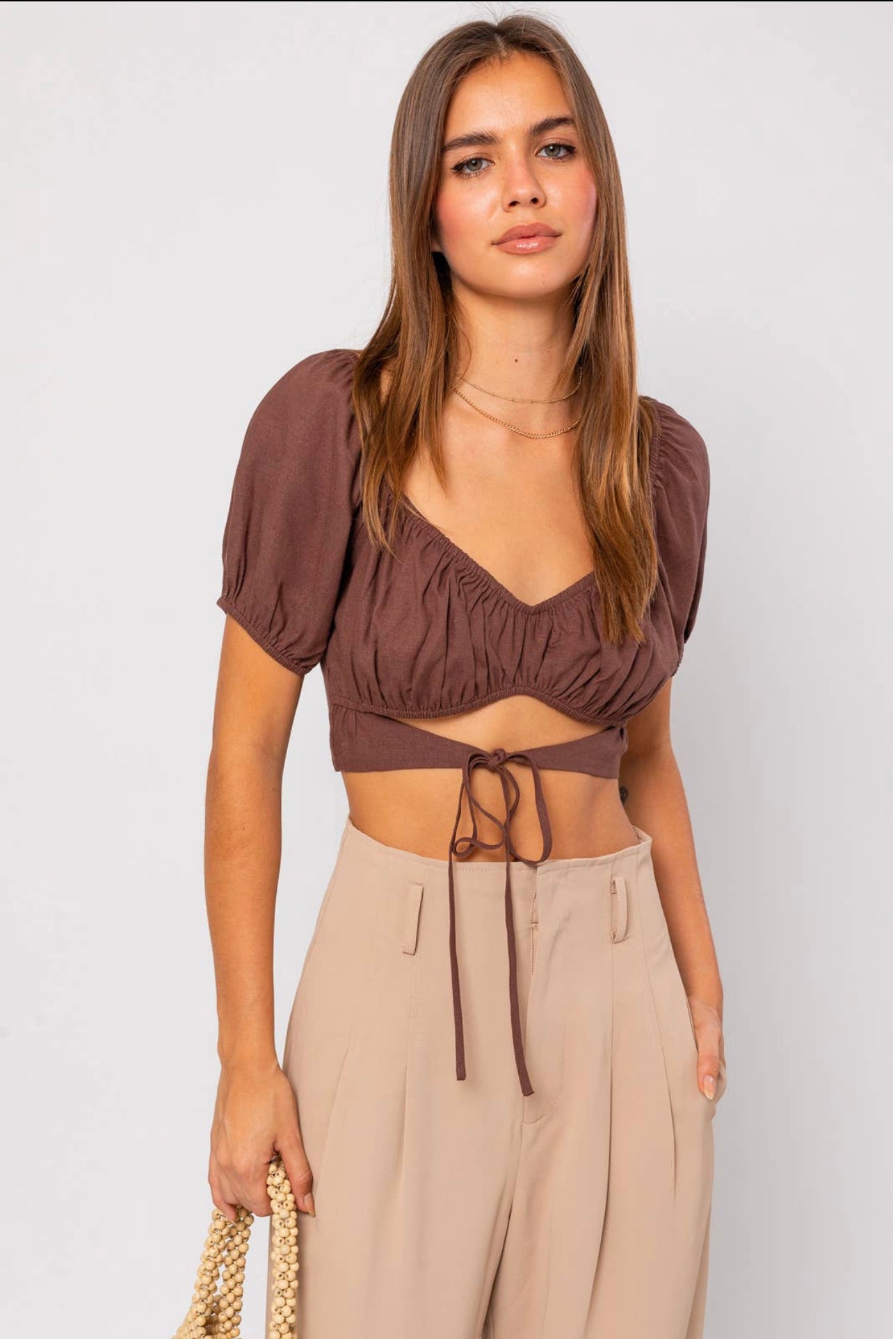 Add a fun flare to any outfit with the Sutton Top! Featuring puff sleeves, tie detail, and a rich cocoa brown color, this top takes your jeans or mini skirt to the next level. Elevate your style and make a statement with the Sutton Top.